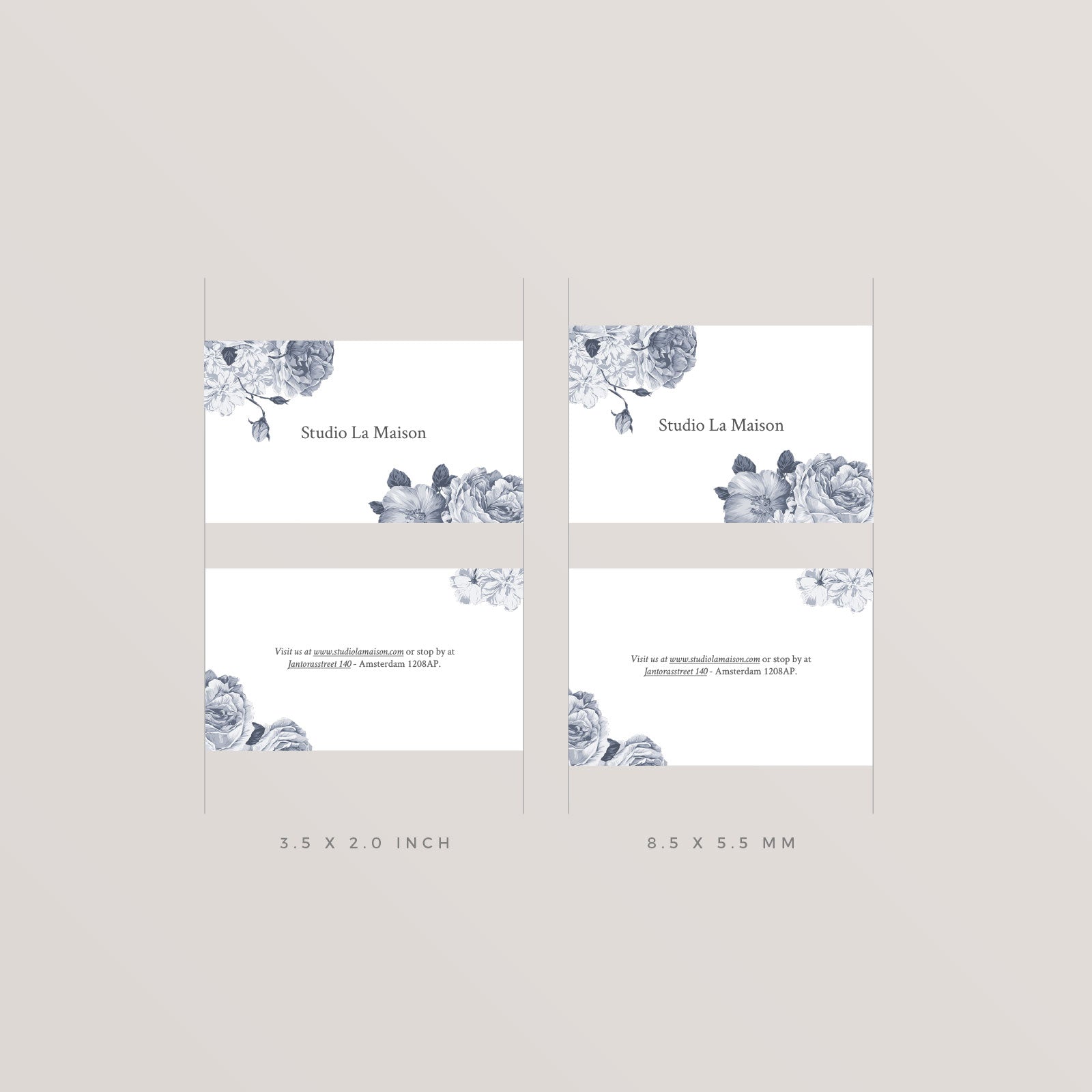 Die La Maison-Visitenkartenvorlage ist eine vollständig anpassbare Vorlage, die mit Adobe InDesign und Adobe Photoshop kompatibel ist. Der Download enthält IDML-Dateien, Anschnitte, Absatzstile, separate Ebenen und die kostenlosen Schriftarten. Mit diesen Visitenkarten präsentieren Sie sich stilvoll und professionell!