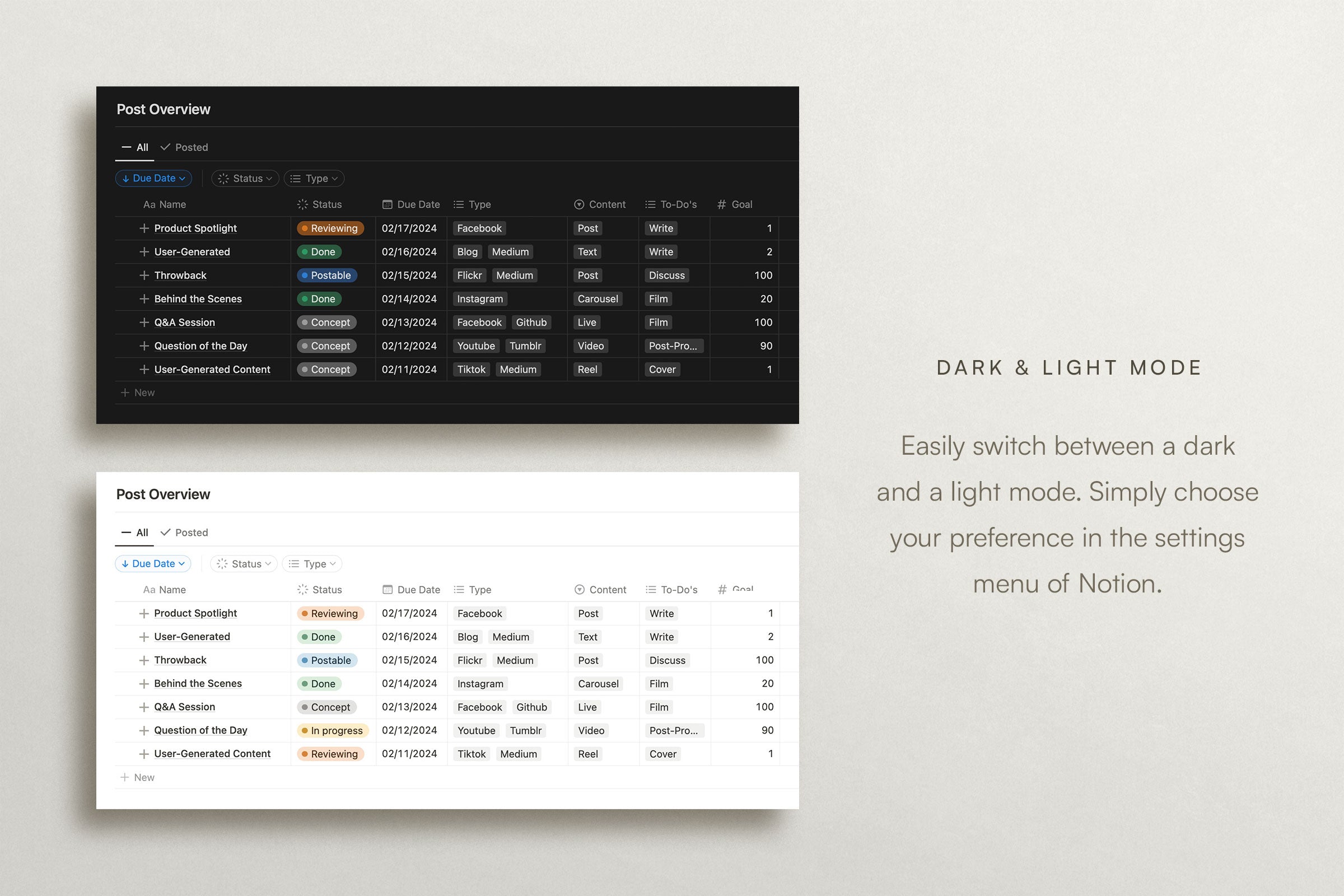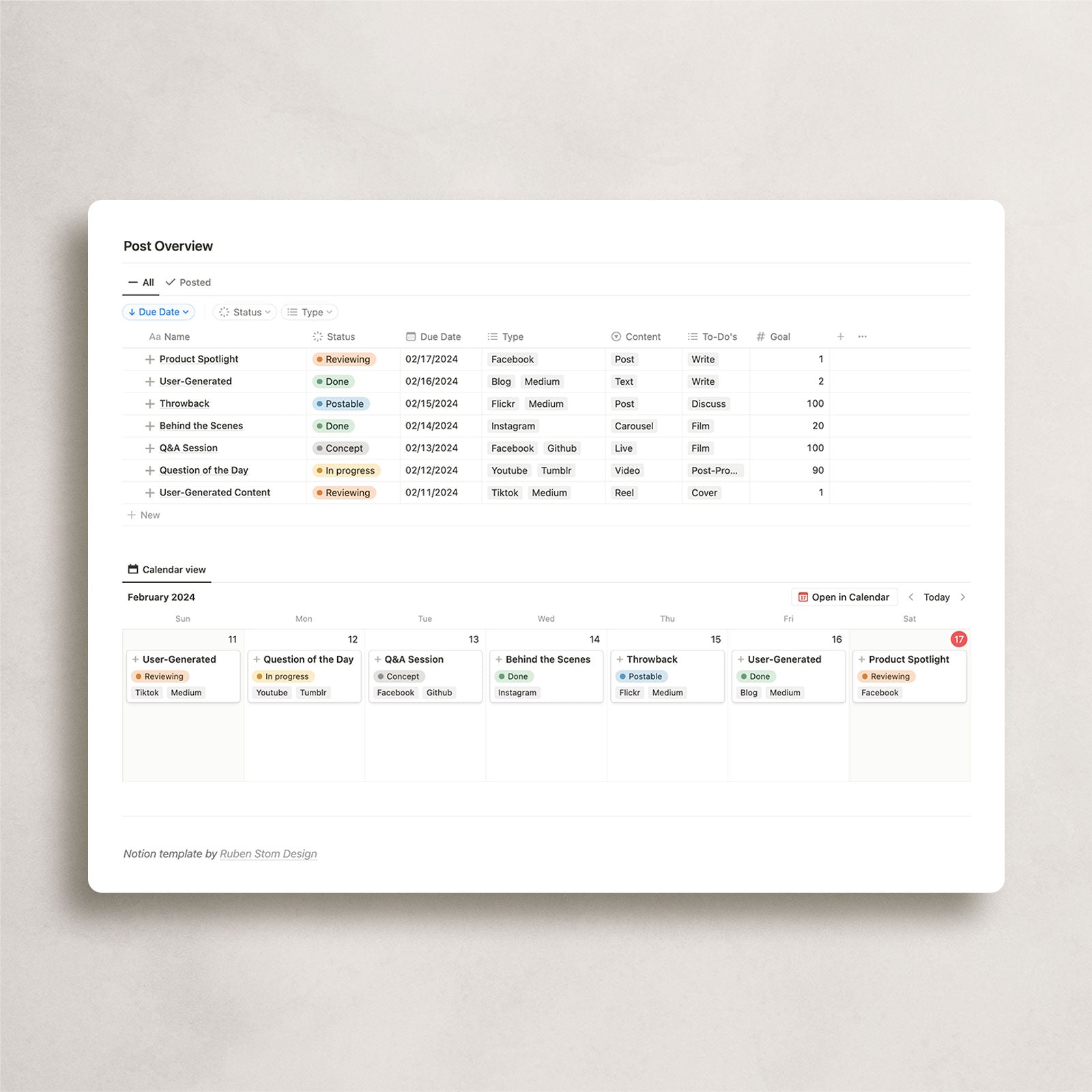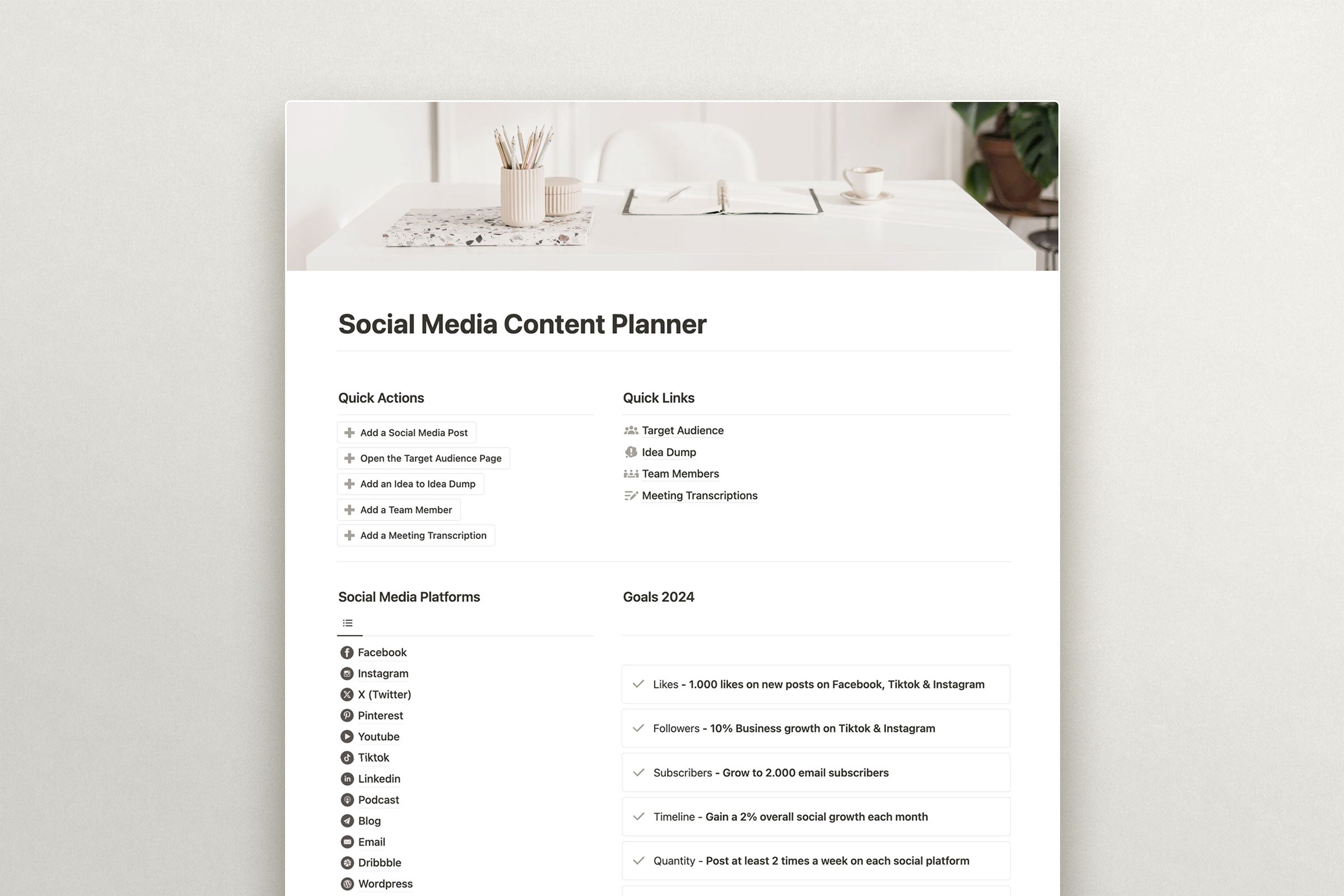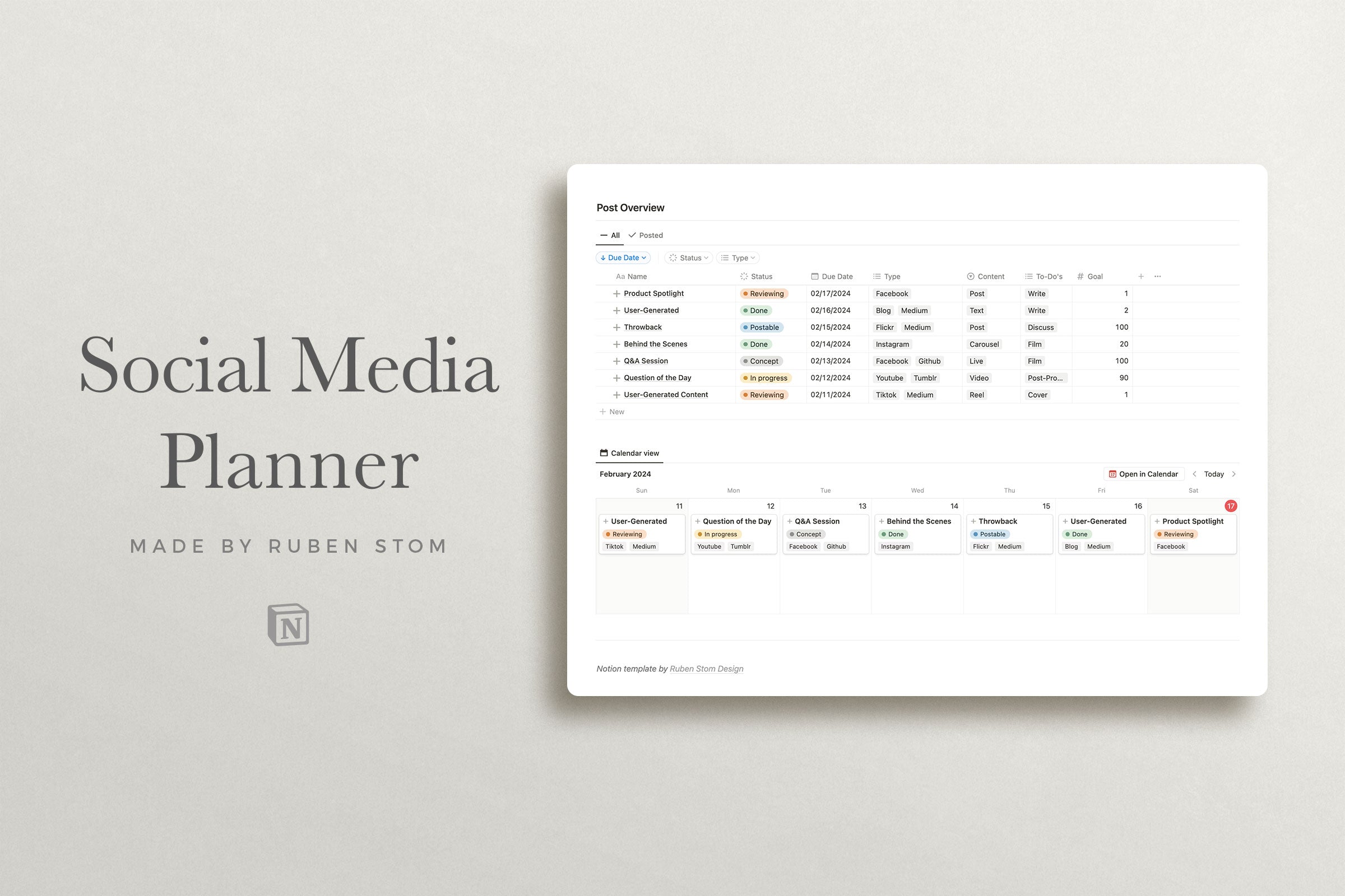 Wir stellen einen brandneuen Social-Media-Planer für Notion vor. Planen und organisieren Sie Ihre Social-Media-Pläne mühelos mit dieser Vorlage. Es spielt keine Rolle, ob Sie ein kleines Unternehmen oder ein großes Unternehmen sind, der Planer funktioniert für jeden. Mit dieser Notion-Vorlage können Sie Ihre Social-Media-Pläne ganz einfach optimieren!