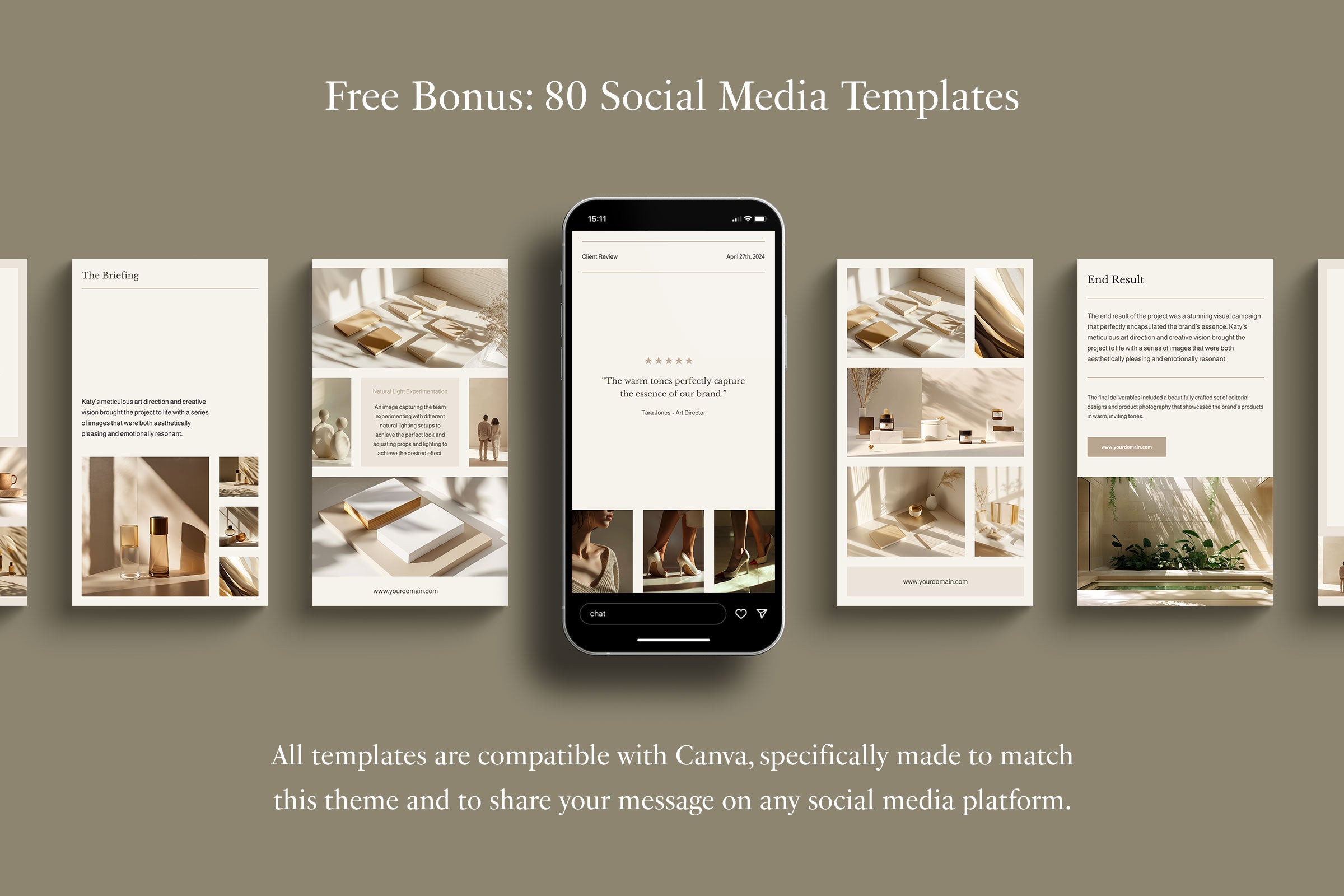 • 80 Social Media Templates: Access a collection of 80 social media templates, compatible with Canva, to enhance your online branding and engagement.