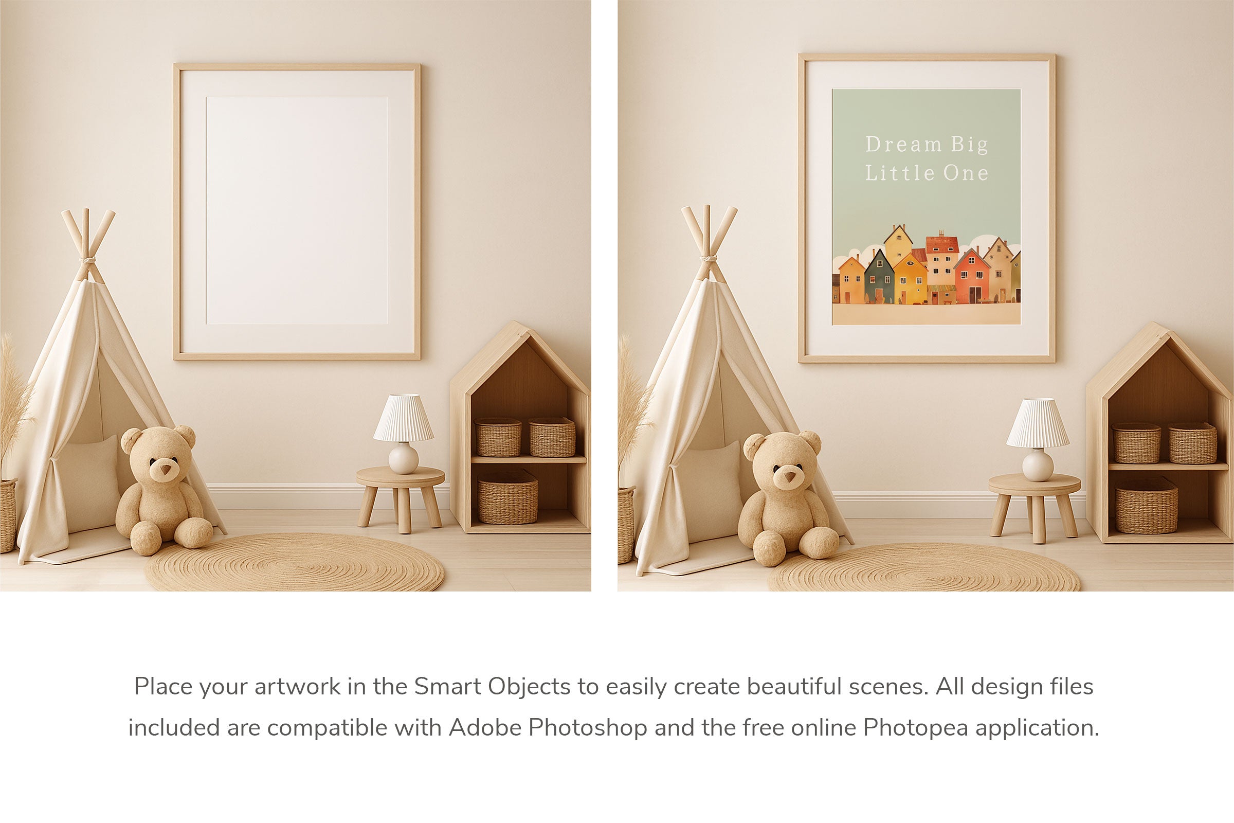 Dies ist eine Sammlung sorgfältig zusammengestellter Modellszenen. Der Download enthält 20 hochauflösende Modelle mit jeweils vier Rahmenoptionen, kompatibel mit Adobe Photoshop und Photopea. Sie sind einfach zu verwenden, indem Sie Ihre Bilder einfach über „Smart Objects“ platzieren. Darüber hinaus ist ein Hilfeleitfaden enthalten. Die „Frame Mockup Scene Collection“ zeichnet sich durch ihren warmen und rustikalen Stil aus. Sie können die fertigen Bilder beispielsweise in sozialen Medien, als Website-Banner, in Druckarbeiten oder in Ihrem Portfolio verwenden. Aber was auch immer der Zweck sein mag, mit diesem Produkt können Sie Ihre Arbeit auf einzigartige Weise präsentieren.