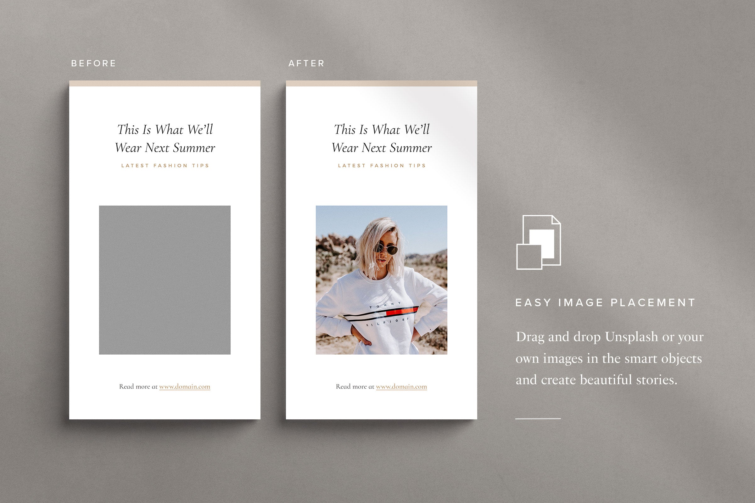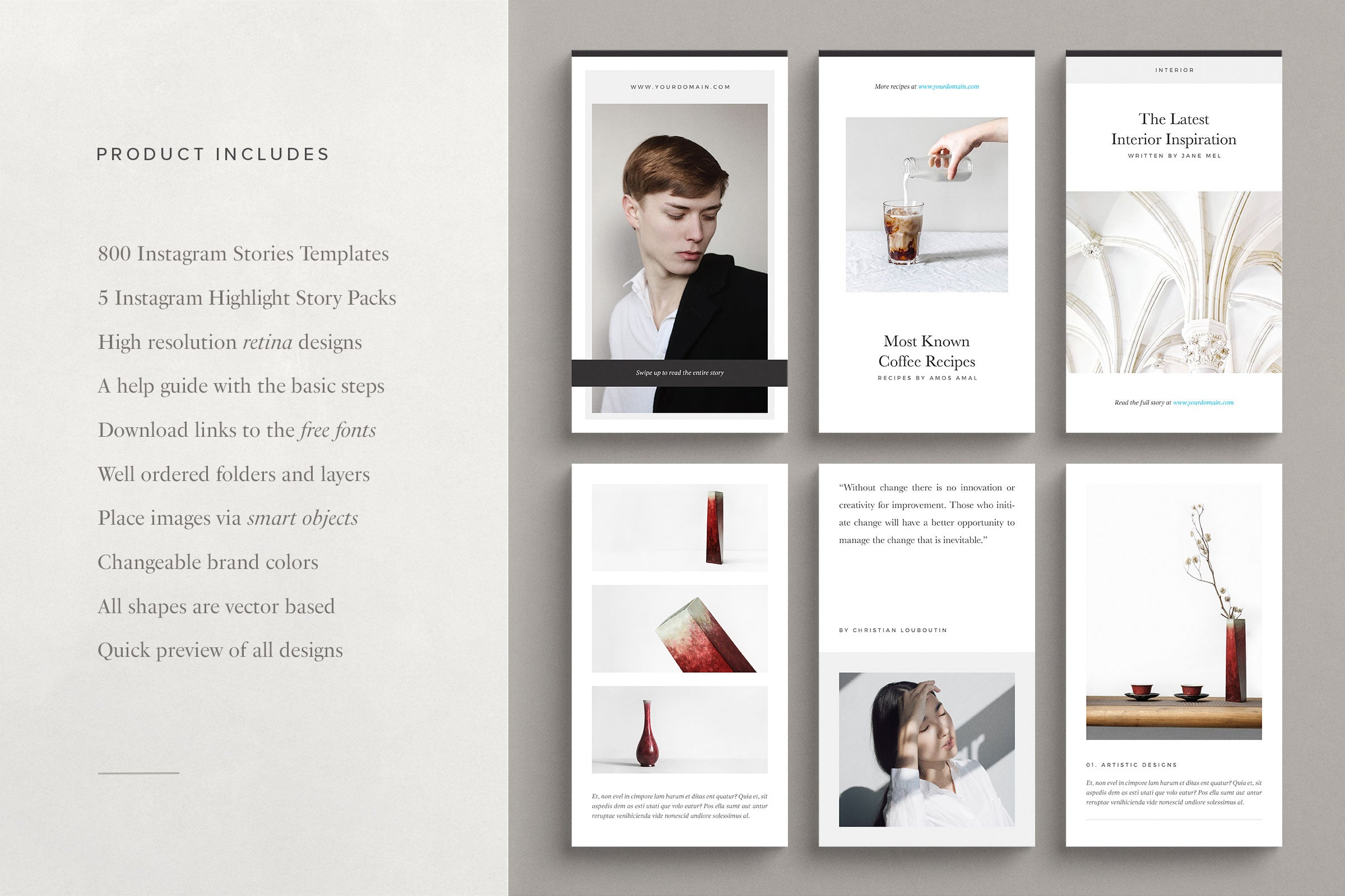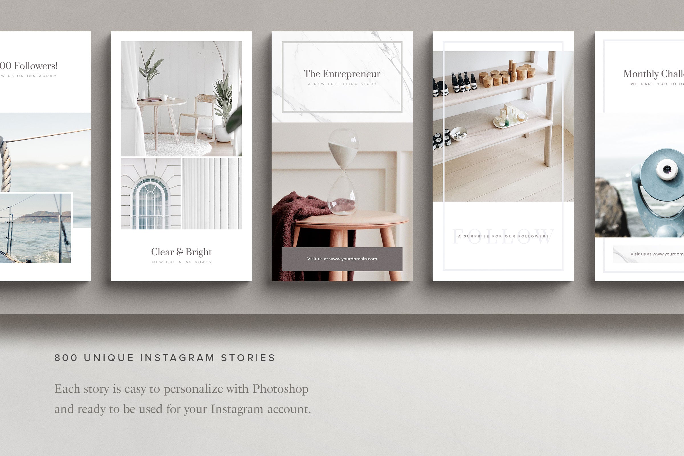 The Instagram Stories Bundle contains 740 high resolution Instagram stories. Each story is easy to personalise and ready to be used for your Instagram. These templates are fully customizable and compatible with Adobe Photoshop. With this pack you can upgrade your Instagram in a stylish and professional way!