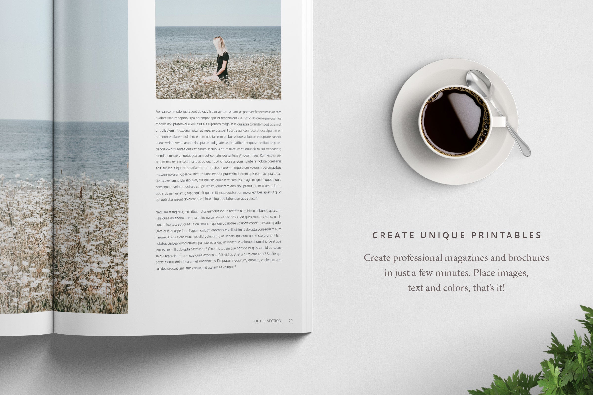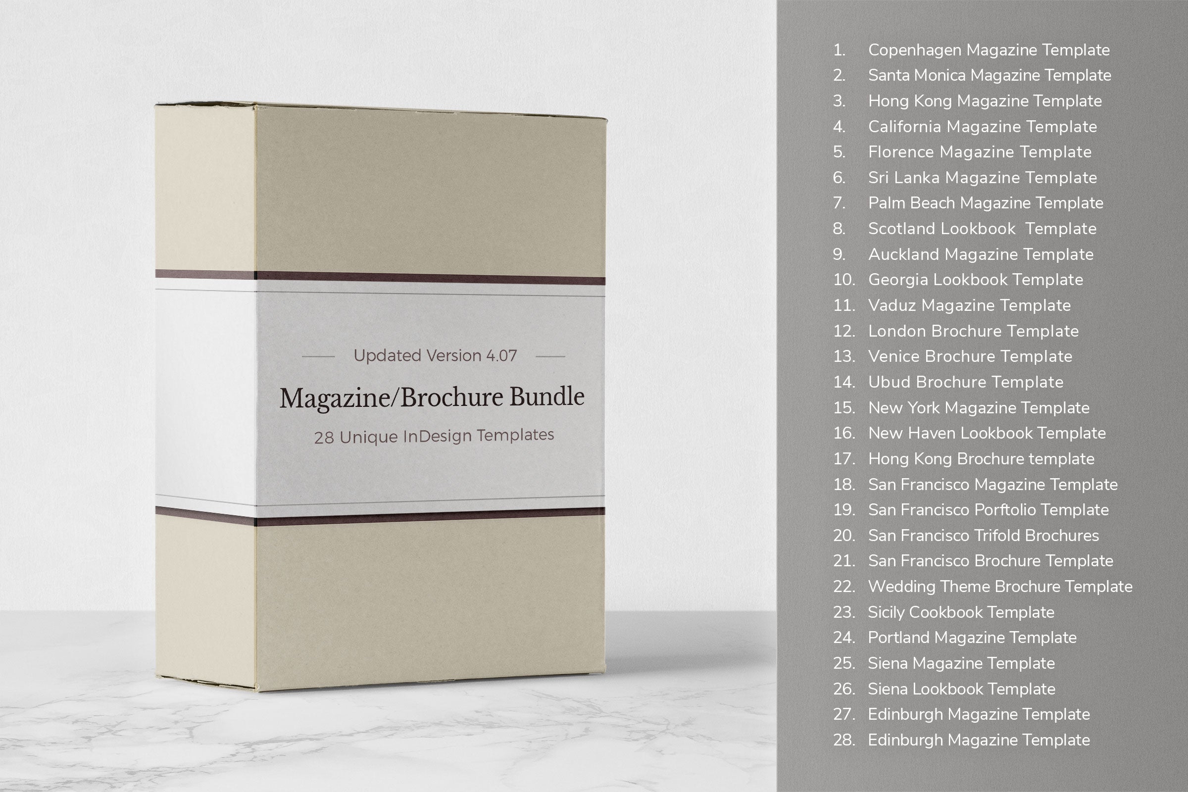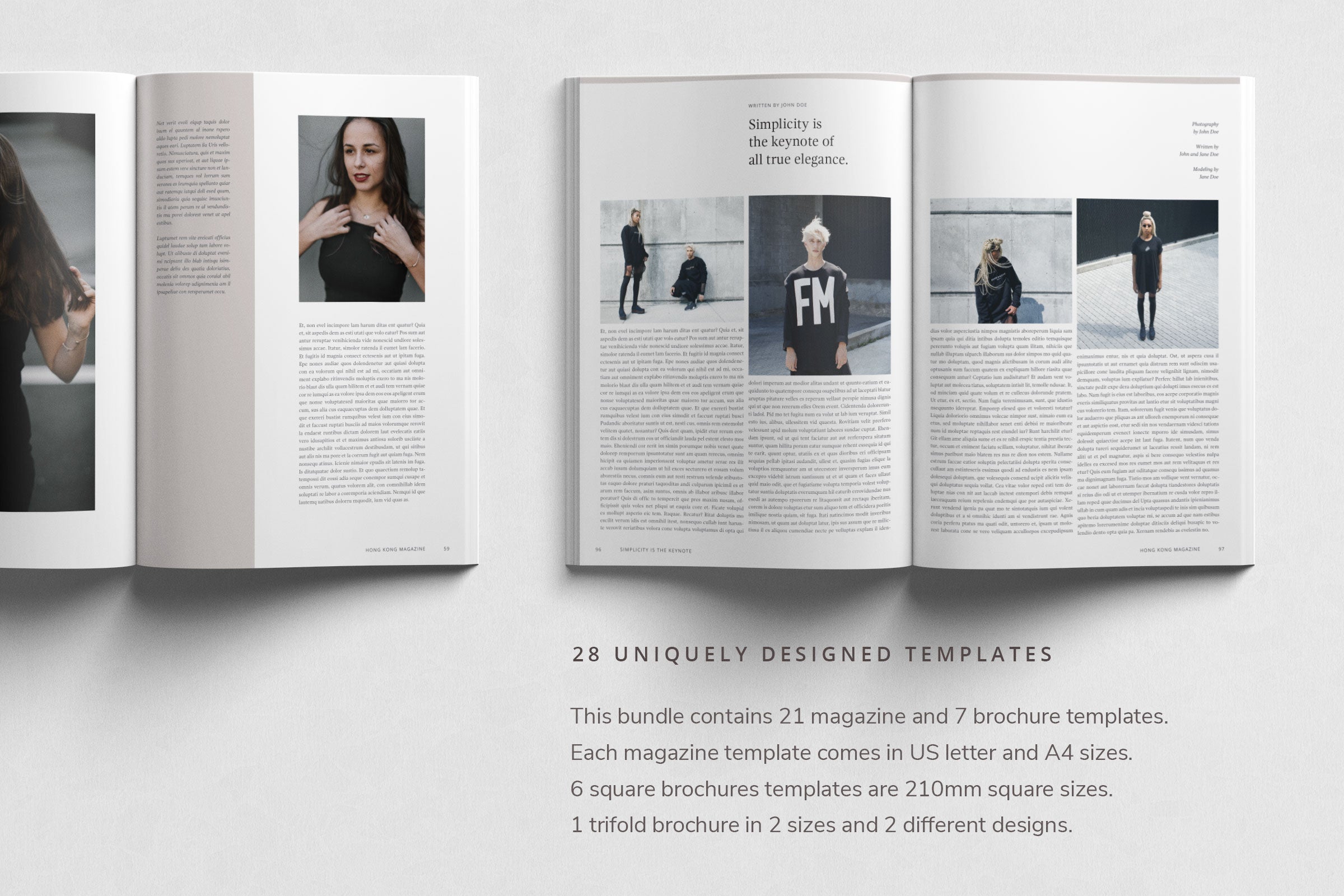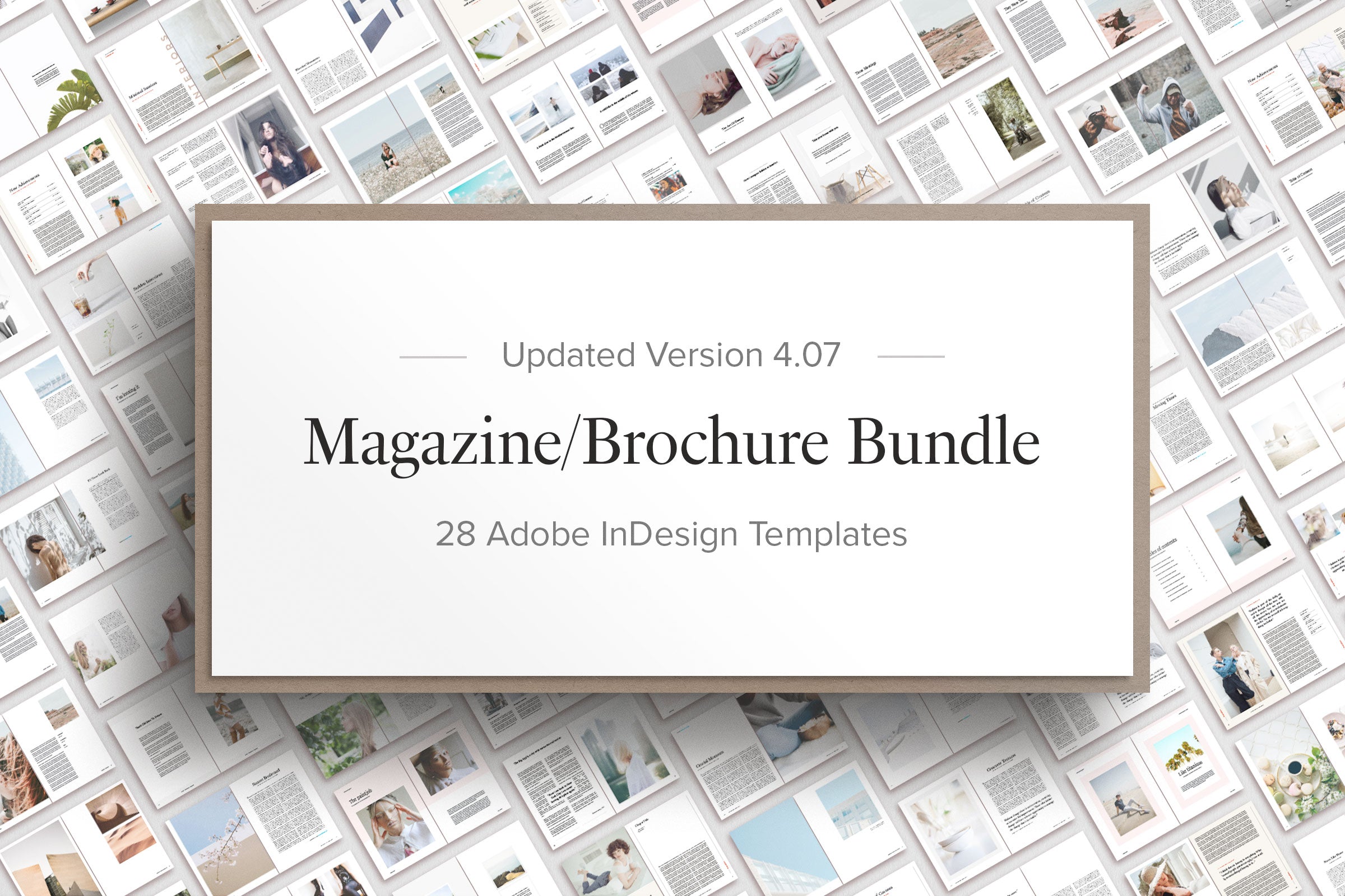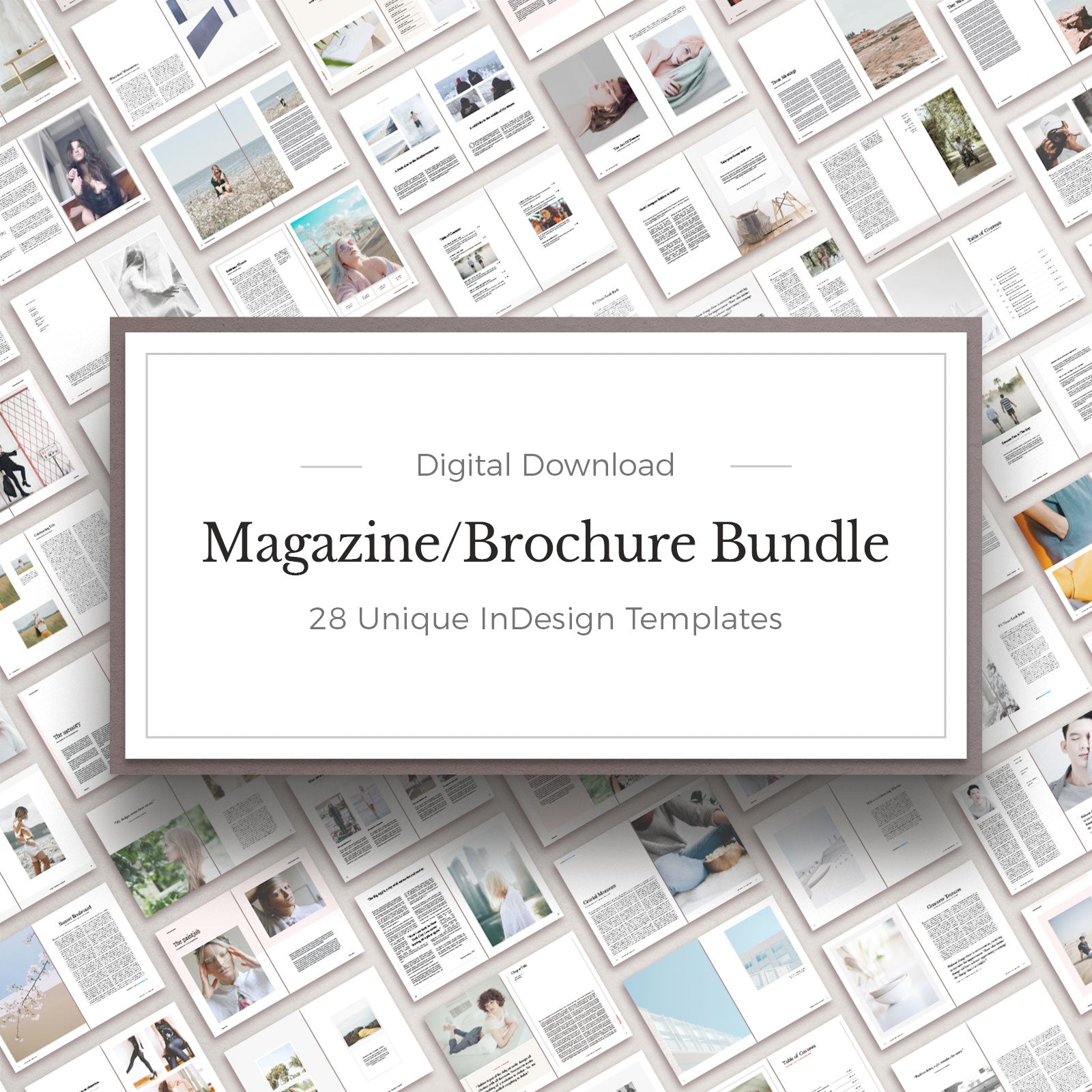 Le pack magazine et brochure contient 28 modèles imprimables, d'une valeur de plus de 600 $. Il existe 21 modèles de magazines au format A4 et US letter, 6 brochures carrées et 1 brochure à trois volets incluses, qui contiennent plus de 1 000 pages au design unique. Vous pouvez personnaliser, ajouter ou supprimer chaque page selon vos propres besoins avec Adobe Indesign. Le bundle contient des fichiers IDML, des fonds perdus, des styles de paragraphe, des calques séparés et des polices gratuites. Avec ces modèles professionnels, vous pouvez raconter votre histoire d'une manière unique.