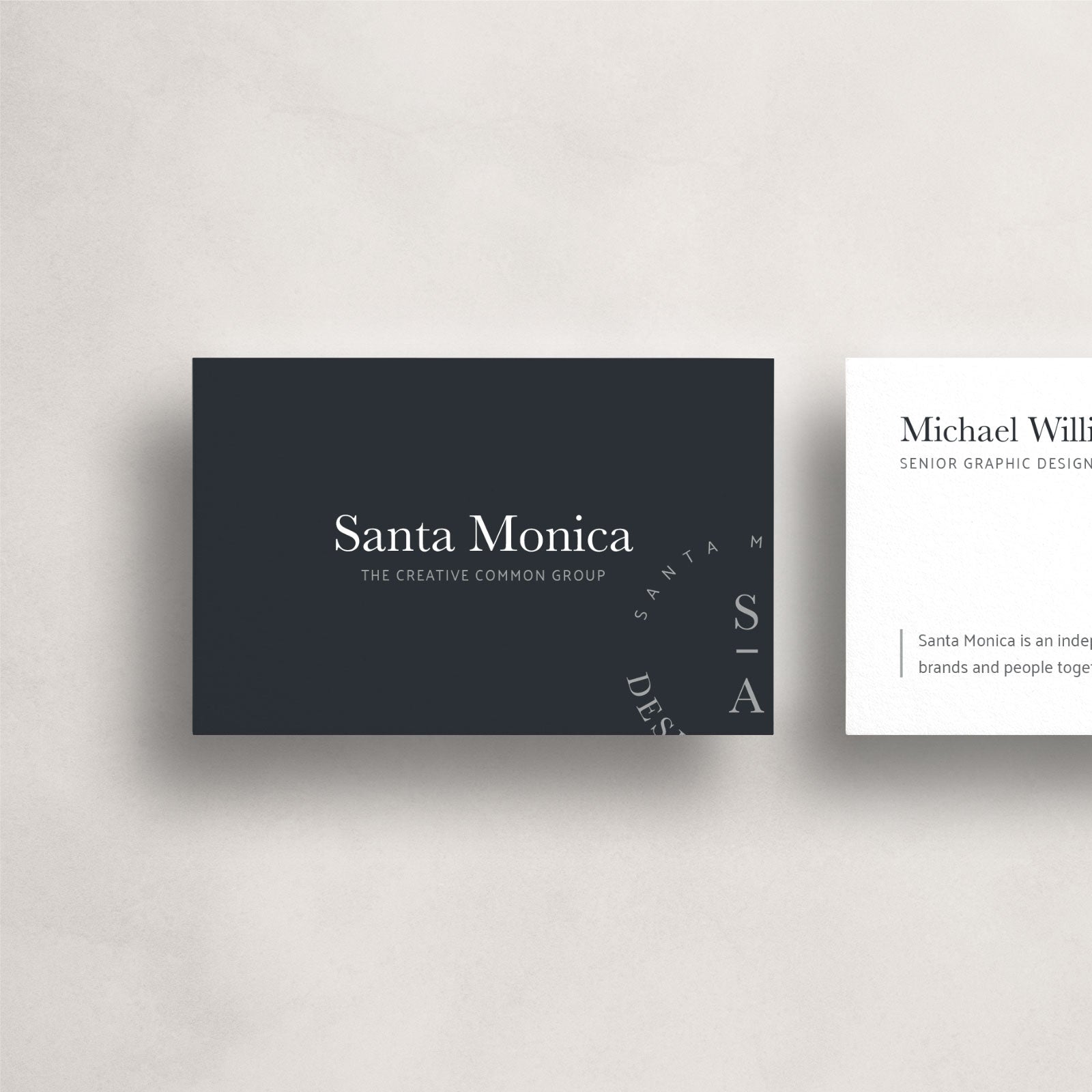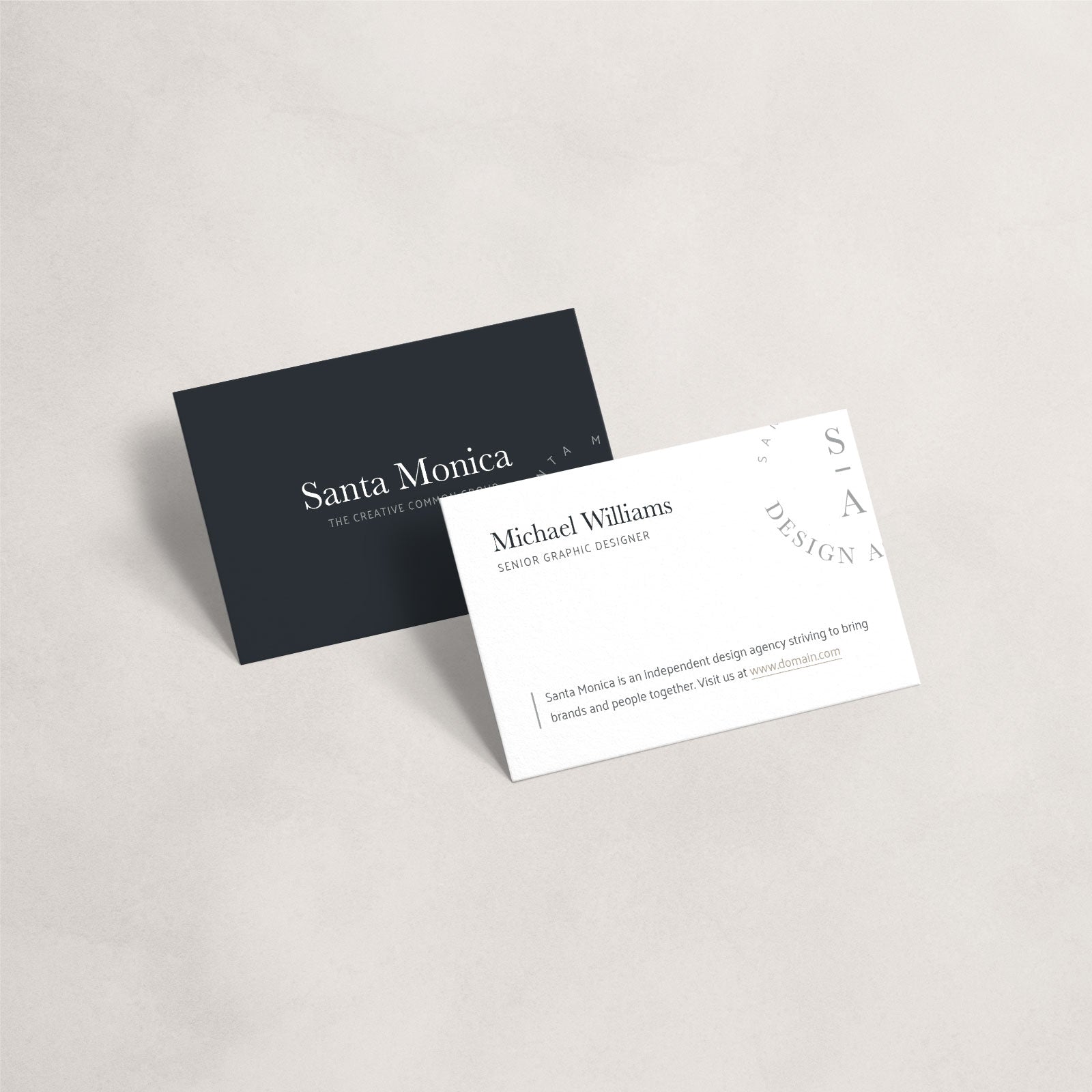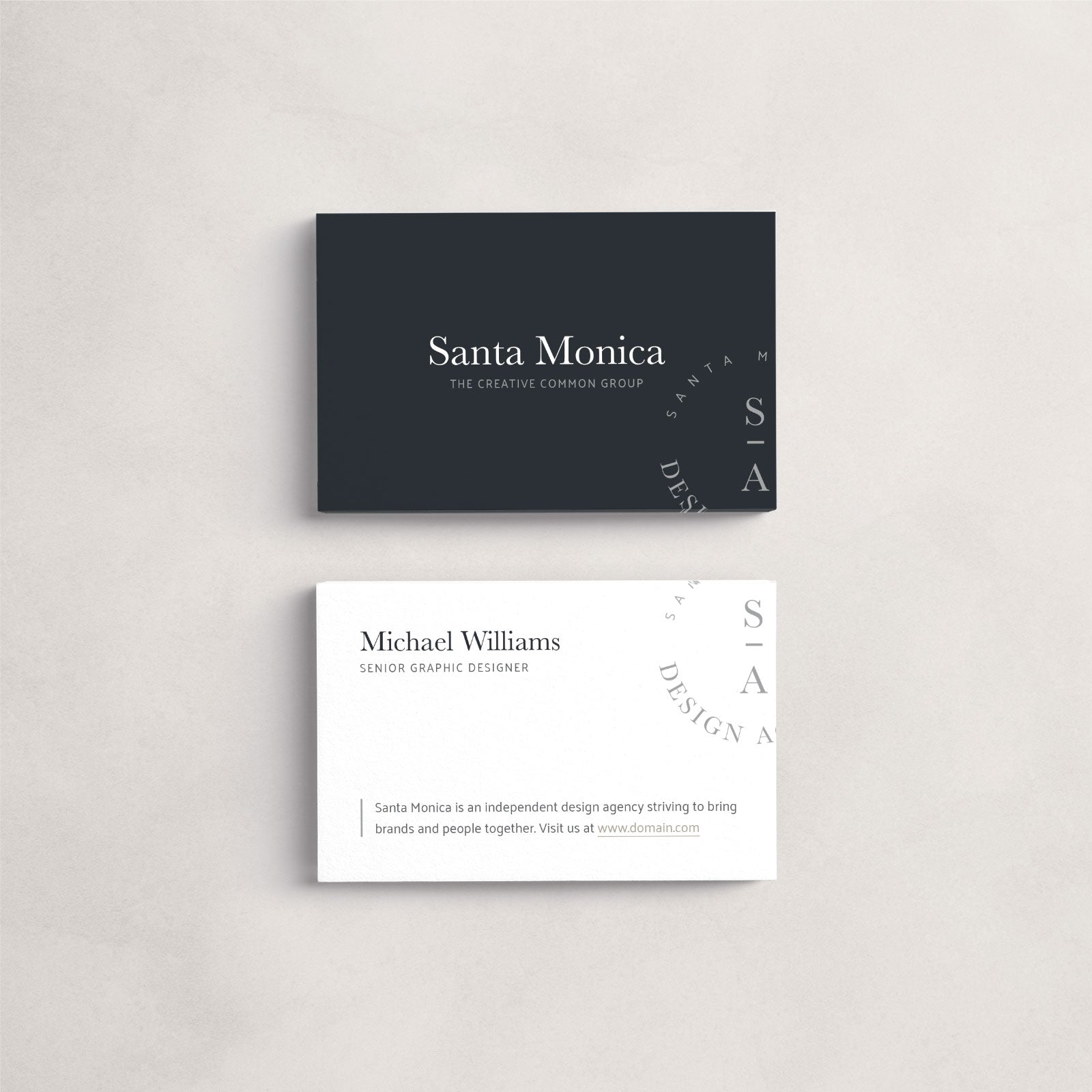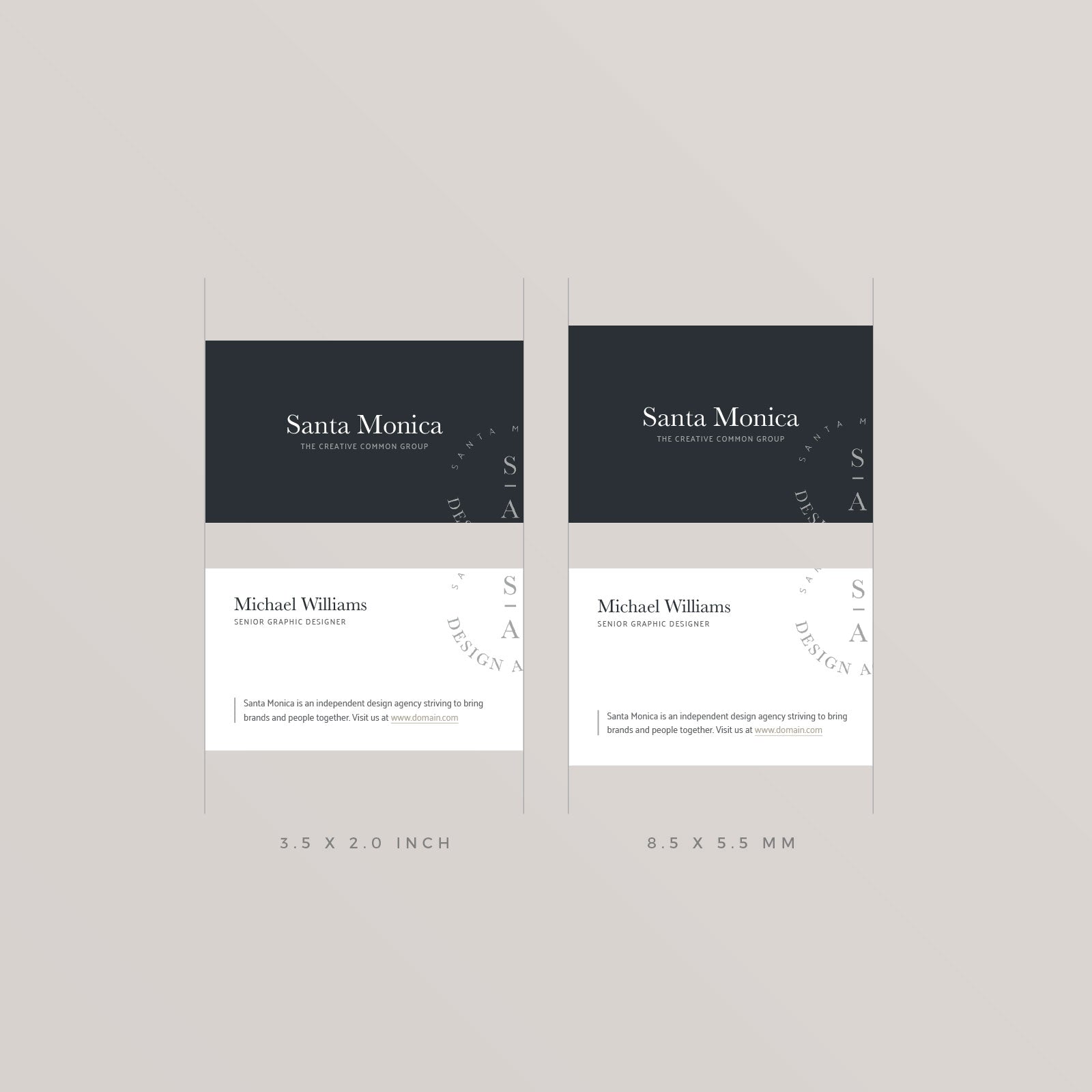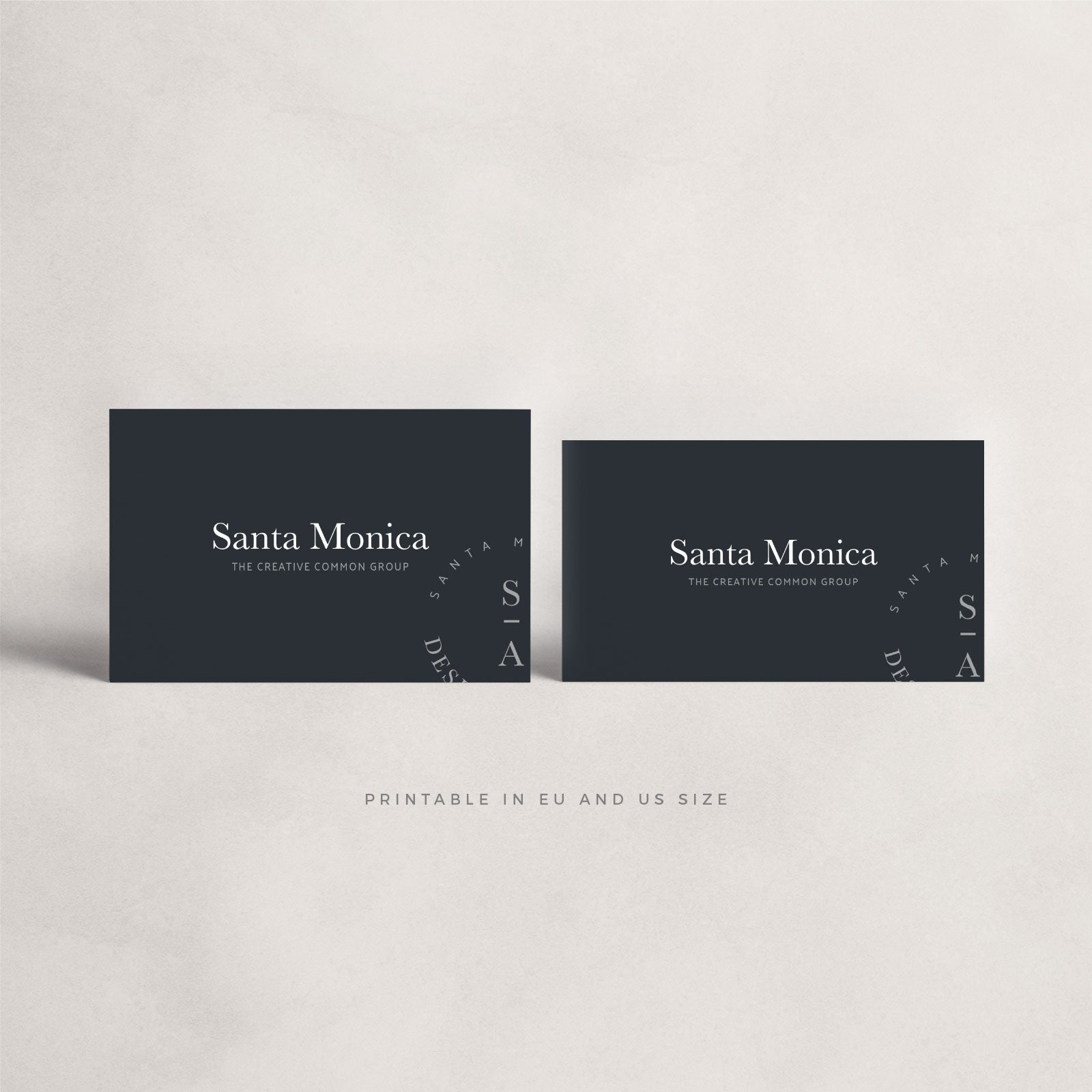 Le modèle de carte de visite Santa Monica est un modèle entièrement personnalisable, compatible avec Adobe InDesign et Adobe Photoshop. Le téléchargement contient des fichiers IDML, des fonds perdus, des styles de paragraphe, des calques séparés et des polices gratuites. Avec ces cartes de visite, vous pouvez vous présenter de manière élégante et professionnelle !