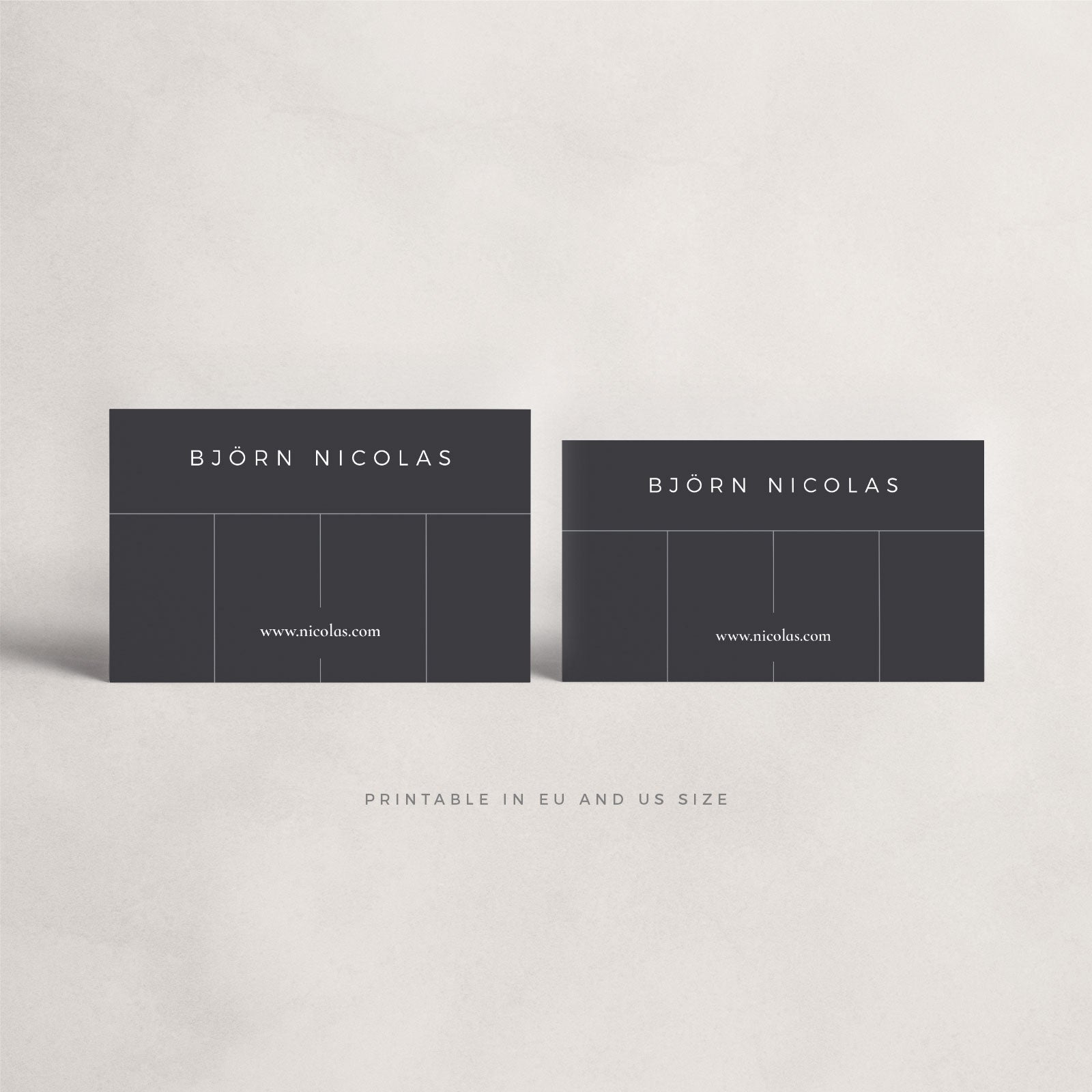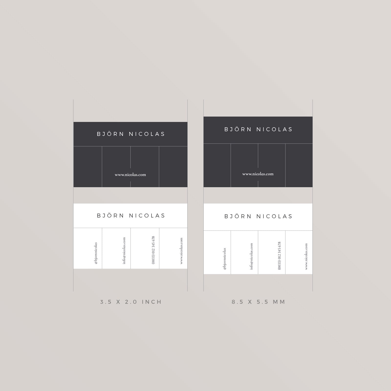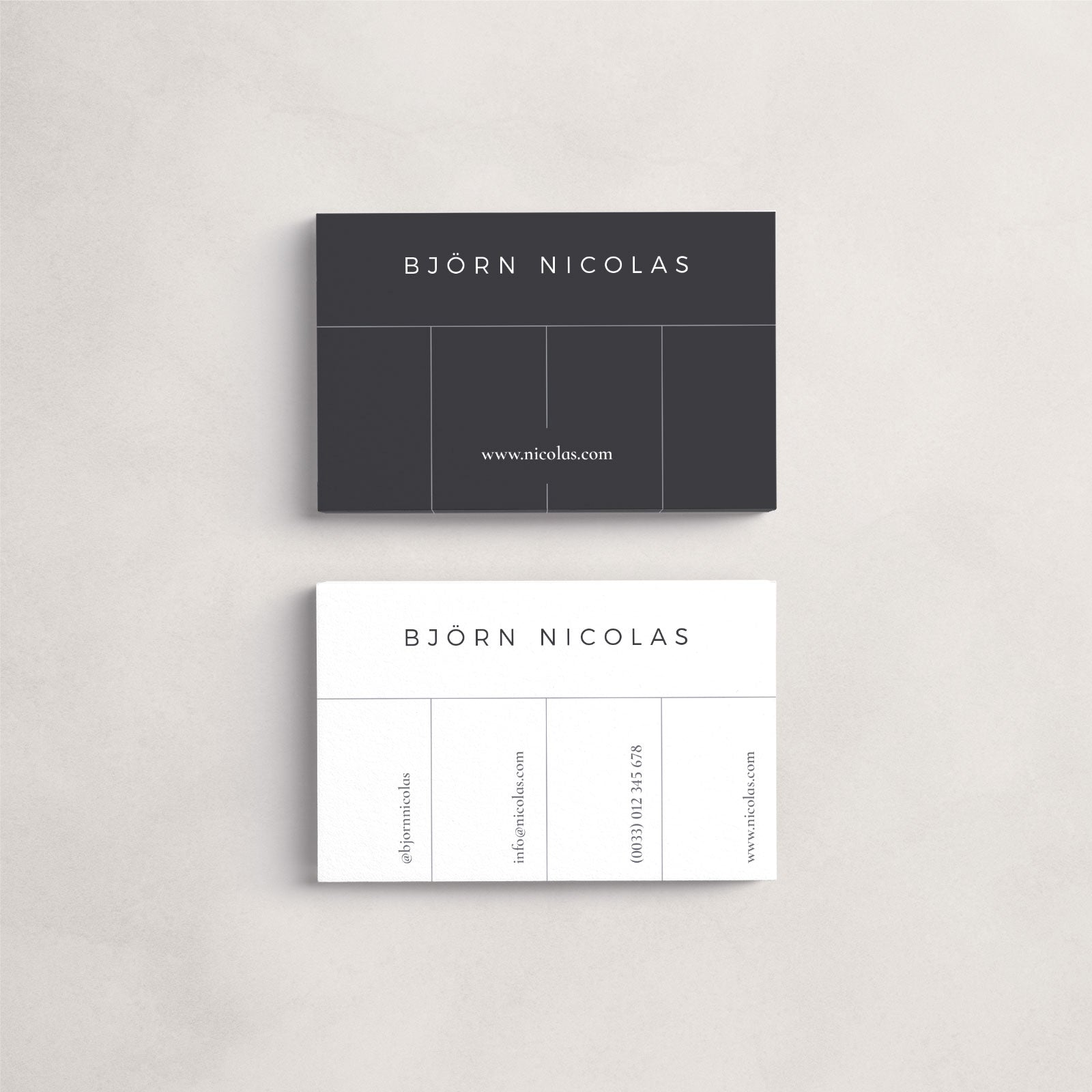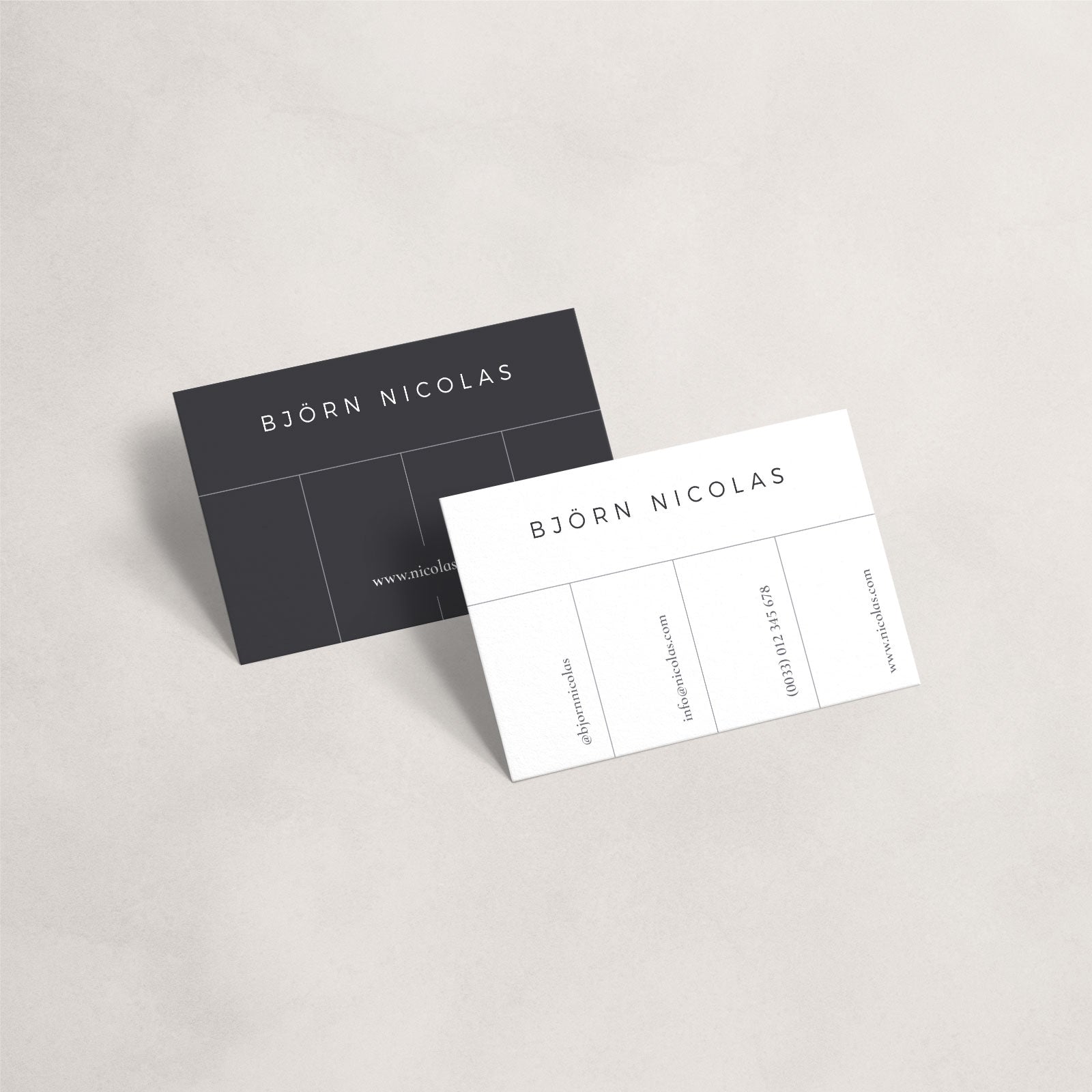 The Björn Business Card Template is a fully customizable template, compatible with Adobe InDesign and Adobe Photoshop. The download contains IDML-files, bleeds, paragraph styles, separate layers and the free fonts. With these business cards you can present yourself in a stylish and professional way!